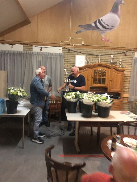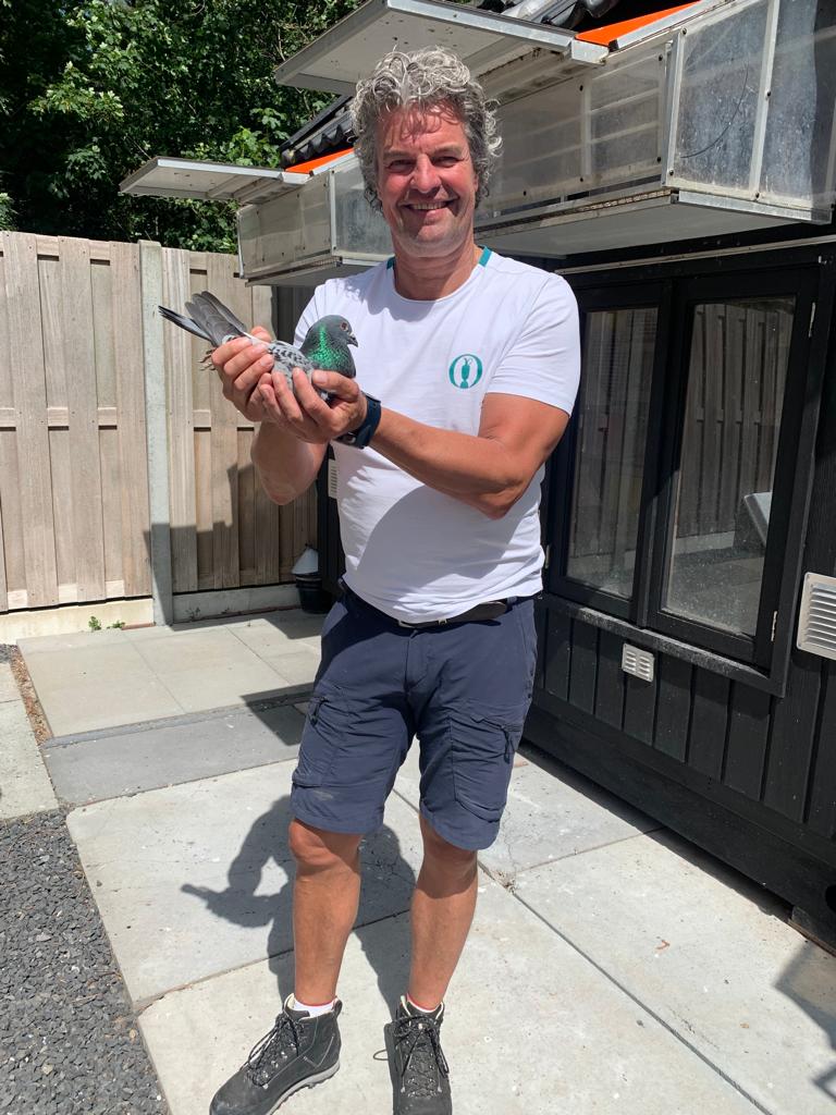 BALK NIC ZWH; Zo stond het afgelopen weekend alweer de derde vlucht op het programma voor de liefhebbers en deelnemers van de Marathon, en wel vanuit Ruffec. Gelegen in het zuidwesten van Frankrijk, ook wel de route via Parijs naar Spanje. Op gemiddeld een 900 kilometer naar het noorden van Nederland, danwel de te vervliegen route voor de duiven van Sector 4. Ditmaal welgeteld 2868 ingebrachte duiven in de inkorflokalen in Friesland-Groningen-N.O.Polder en Drente. Met de “voorlopige” nieuwe opzet van de NPO om met een ochtendlossing te komen, niet meer uit Orange maar het toch normaal gesproken gemakkelijker station om naar huis te vliegen uit Ruffec. Uiteraard te allen tijde geheel afhankelijk van de weersomstandigheden! Er gingen met de duiven van sector 3 een kleine 10000 om 7.15 uur het luchtruim in. Prima weer en een wind komend uit zuidwest tot west. Alle ingrediënten ruimschoots aanwezig om op de dag van het lossen de duiven al terug te mogen verwachten. In de loop van de middag stonden de duivenmelkers dan ook al tijdig bij hun hokken de dieren op te wachten. In het NIC ZWH te Balk waren er 497 duiven door 32 deelnemers ingebracht Het werd een ware triomftocht voor Erik Houter op Vlieland. Erik, inmiddels al lang geen “kleintje” meer op deze concoursen, heeft dan ook al een mooie staat van dienst weten op te bouwen . De geweldige uitslag die hij met deze Ruffec zou gaan maken is er eentje geworden van een overtreffend gehalte, en komt dan ook met stip op 1 op zijn naam. Wat heet; de eerste geklokte duif “Irene” zou als winnares Sector 4 de boeken in gaan. Ditmaal waren Erik en diens vrouw Mandy lekker bezig op hun erf rondom de hokken, toen Mandy als eerste de duif zag vallen. “ Erik is dat niet een duif die naar binnen wil gaan op de valklep “ sprak ze uit, en ja hoor daar was de blauwe duivin – 2020/1043788. Erik, toch niet op zijn mondje gevallen, zei “ verrek ja “. In het hok gesneld zat ze inmiddels al op het nestje met haar eitjes van net een week oud. Topfit, alsof ze helemaal niet was weggeweest. Ze was geklokt om 17.29.32, de afstand naar Vlieland bedroeg 881,886 kilometer en dat bracht een gevlogen snelheid van gemiddeld 1435,02 m.p.m. Na het melden bij de meldpost brak er een tijd van spanning aan, met kippenvel op de armen wachten. Nergens immers in de sector was al een duif gemeld. Na goed een half uur werd het duidelijk: ERIK HOUTER MET DUIF IRENE ZOU RUFFEC SECTOR 4 WINNEN. De duif stamt af van vaderskant van Simon Kuipers – de lijn Gebr. Hagens – van de beroemde Sarina – 1e nationaal Barcelona – en een zus 6e nationaal Cahors. Van moederskant Jan Schreurs met een 2e nationaal ZLU. Dus een geweldige lijn zit in de genen. Maar niet alleen zijn eerste duif deed het geweldig, zijn totaal ingekorfde ploeg van 34 duiven kwamen als de spreekwoordelijke goed lopende trein terug gevlogen. Binnen een uur waren er ook al zijn 2e-3e en 4e duif terug. In het NIC ZWH goed voor de plekken 4-6 en 7. Totaal komen er 15 prijsduiven in de uitslag te staan van het hok Houter. Wat een prestatie! Het inmiddels bekende feestje wat losbarst als Erik zijn naam bovenaan een uitslag komt te staan bleef dan op zowel Vlieland, als in het inkorfcentrum in Balk, werd weer ruimschoots gevierd. Erik Houter – Vlieland heeft geschiedenis geschreven. Met voor hem met zijn duiven de mooiste overwinning te maken in zijn carrière als duivenmelker. Proficiat.